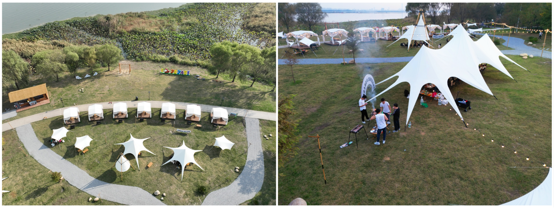 下午兩點(diǎn),我們來到了位于陽澄湖鎮(zhèn)的露營基地。放眼望去,一頂頂帳篷似羽翼華美的白天鵝,在這綠草如茵的場地上舞動。遠(yuǎn)處的湖面在陽光映射下熠熠生輝,如璀璨星辰投入山林懷抱。耳邊隱現(xiàn)的鳥鳴挑動著大家緊繃的神經(jīng),這一刻我們忘卻了所有煩惱,步入這畫中世界。圍爐煮茶、天幕燒烤、林中越野,一項(xiàng)項(xiàng)活動放松了大家的身心,也拉近了彼此的距離。嘴角微笑抹去片片愁容,心間暖意撫平陣陣秋涼,一群有趣的靈魂在此刻碰撞,迸發(fā)出無窮的能量,激勵著大家無畏挑戰(zhàn),勇敢向前!